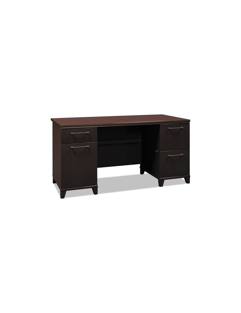 Enterprise Collection Double Pedestal Desk offers a transitional styling that creates a professional impression anywhere. Constructed with 100% thermally fused laminate for durability and superior resistance to scratches and stains. Integrated 4-port USB hub connects electronic devices. Dual pedestals are finished with metal drawer pulls for contemporary styling and durable edge banding to resist dents. Drawers operate on full-extension ball bearing slides file drawers accommodate letter, legal or A4-size files. Desk and Pedestals sold and shipped separately&mdash ORDER BOTH. Color: Mocha Cherry Pedestal Count: 2 Top Shape: Rectangular Top Material: Thermally Fused Laminate Over Engineered Wood. Unit of Measure : Each