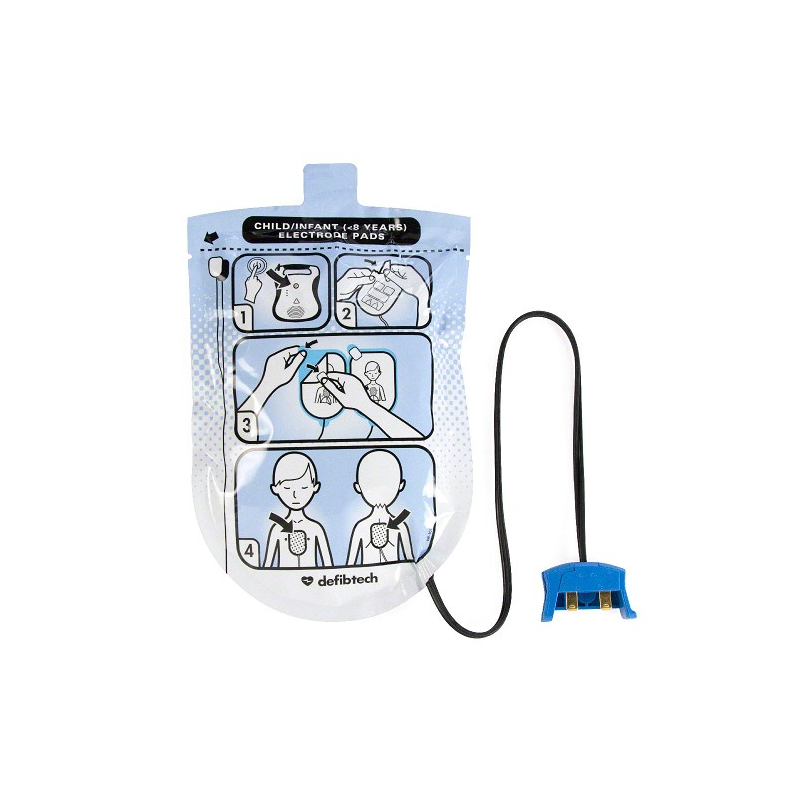 These unique defibrillation electrode pads from Defibtech reduce the energy level from the AED to a child-appropriate "dose".